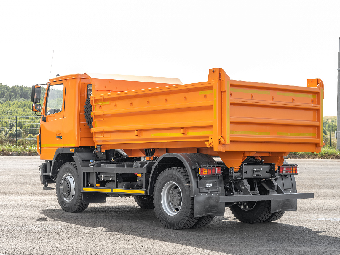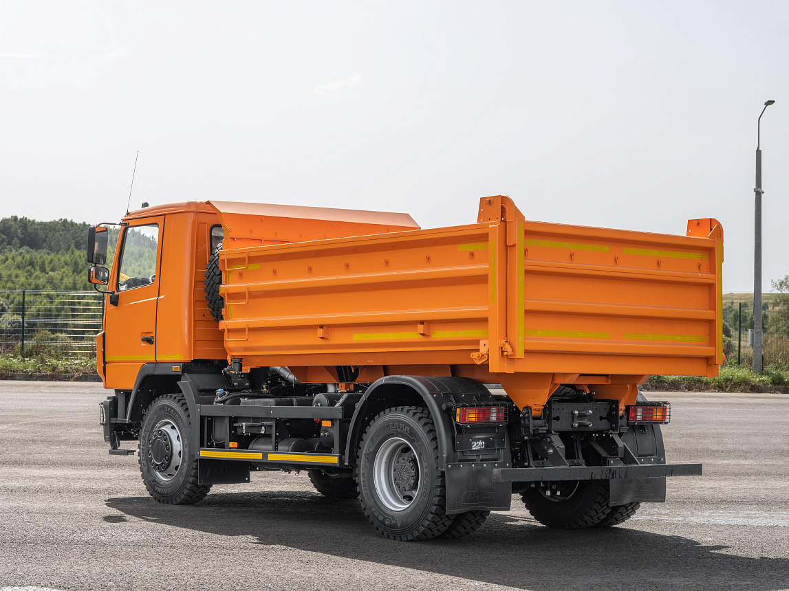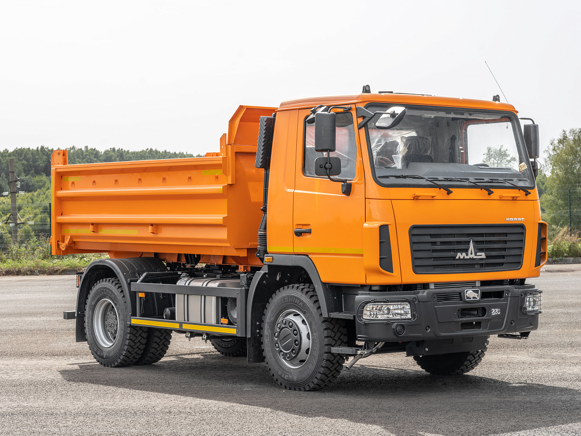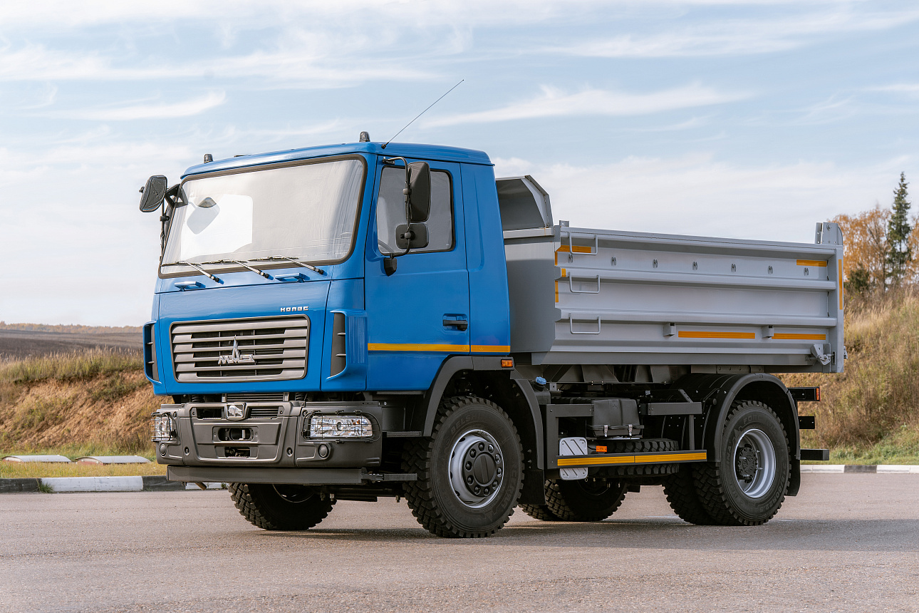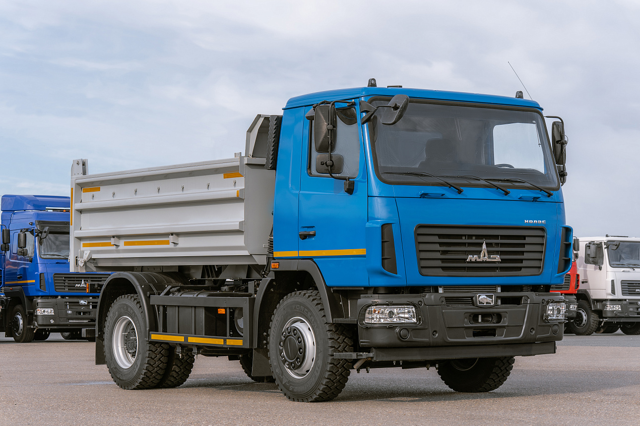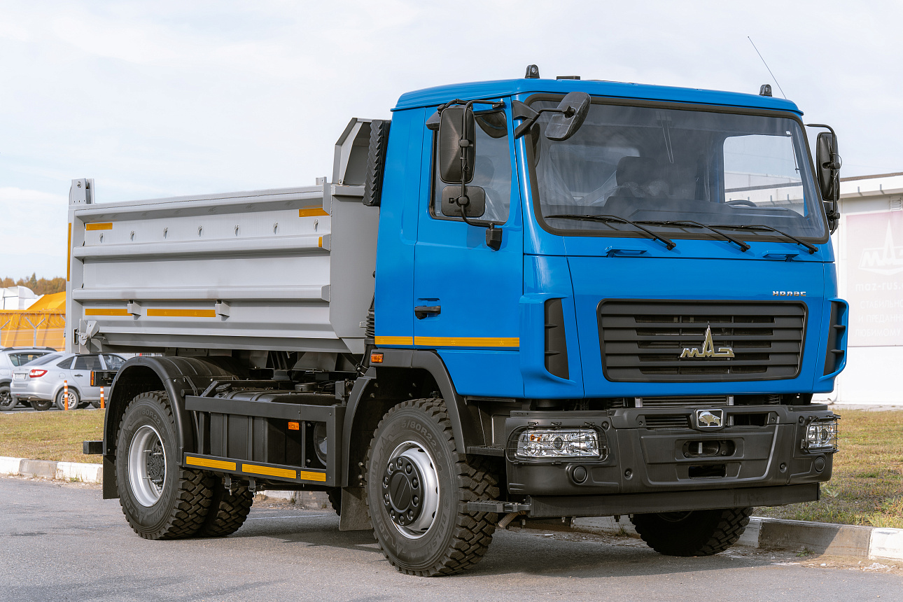 Дилерская сеть МАЗСамосвал с колесной формулой 4х2. Используется как в качестве единичного транспортного средства, так и в составе автопоезда.
