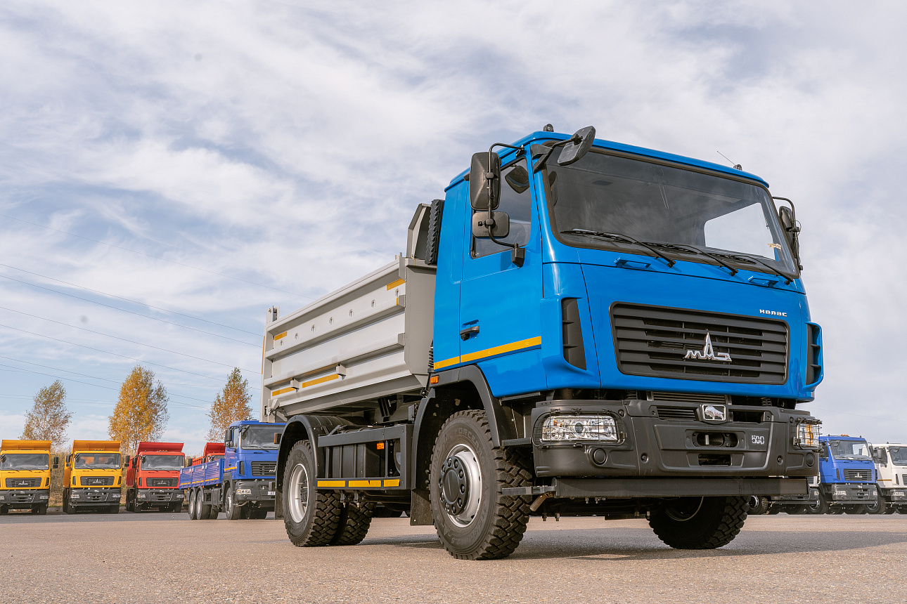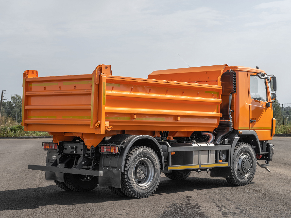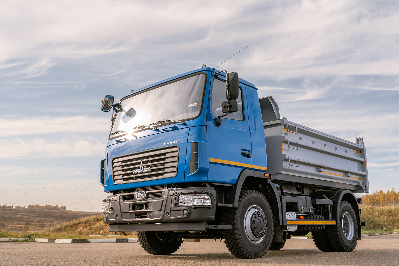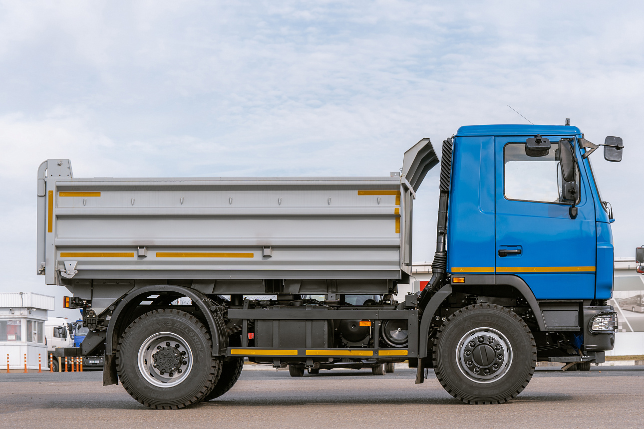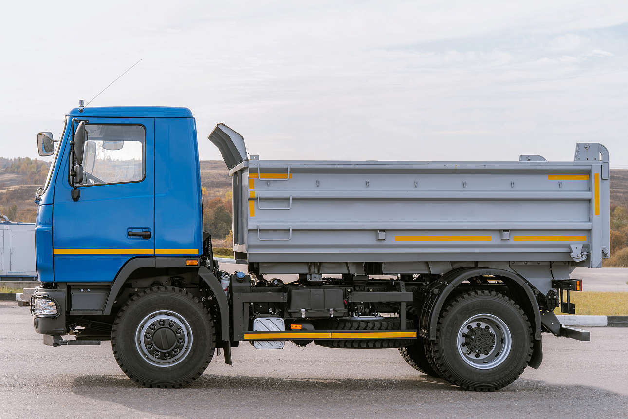 Дилерская сеть МАЗСамосвал с колесной формулой 4х2. Используется как в качестве единичного транспортного средства, так и в составе автопоезда.