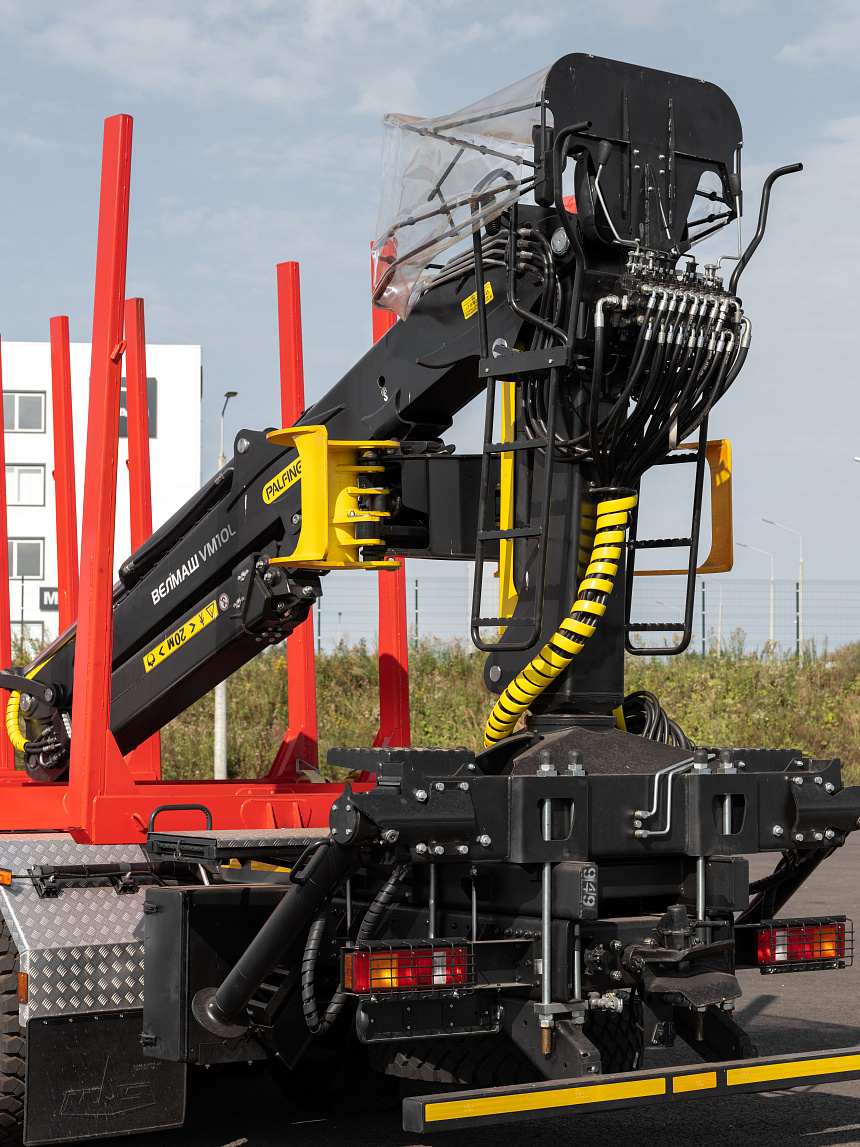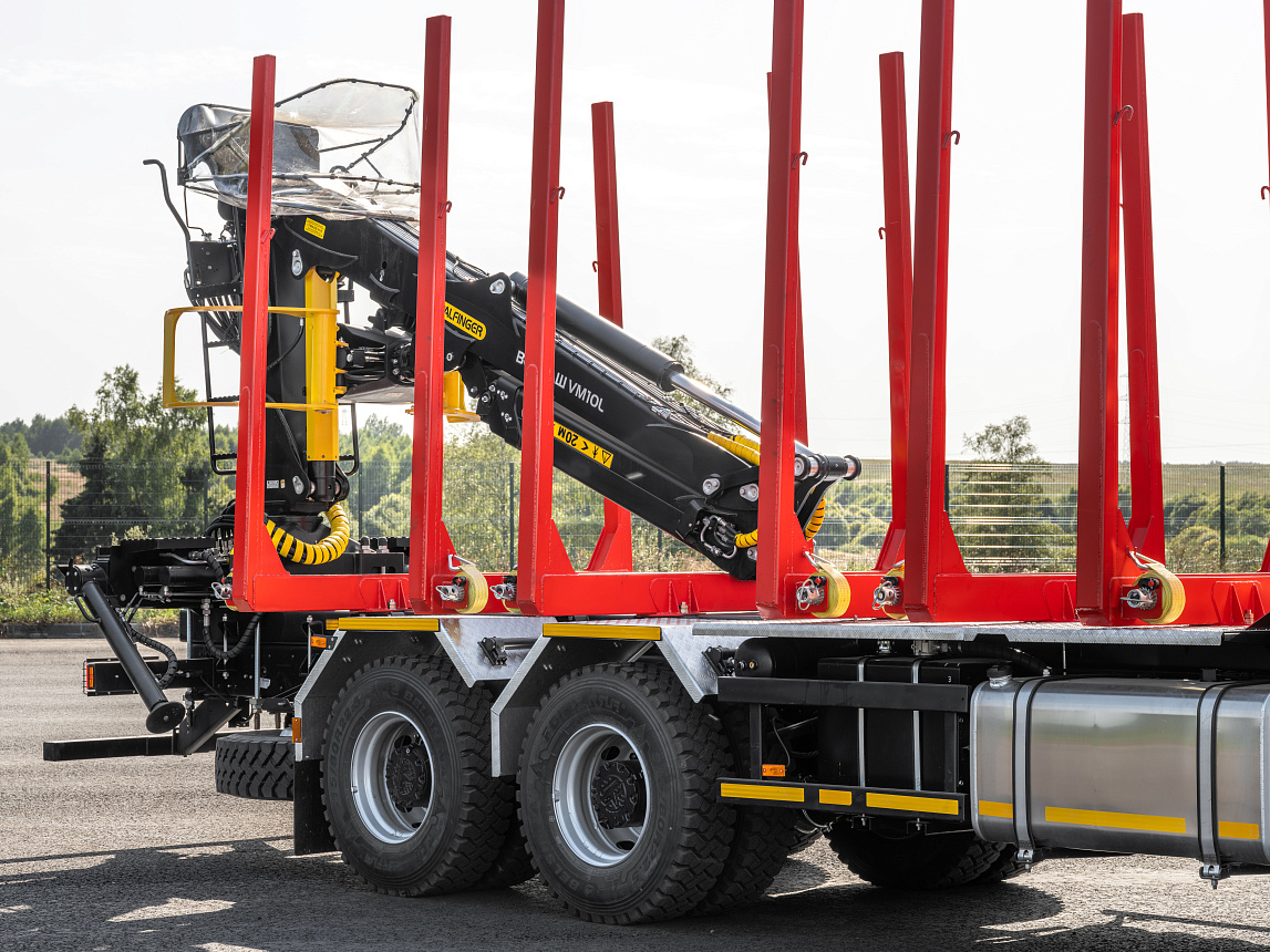 - Шасси 6312 с сортиментовозной надстройкой может быть как в серийном исполнении, так и с установкой крано-манипуляторной установкой (КМУ) различных мировых производителей.