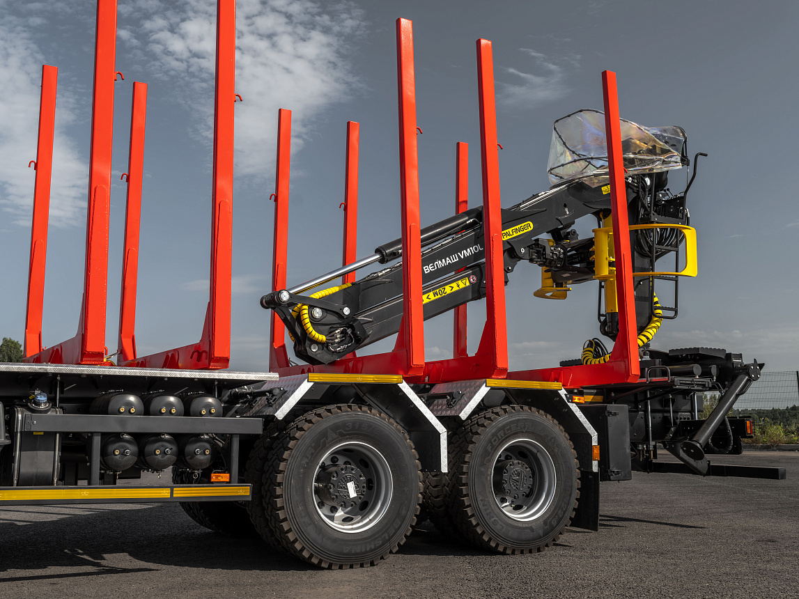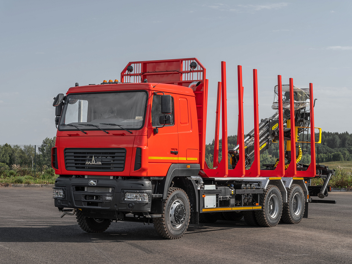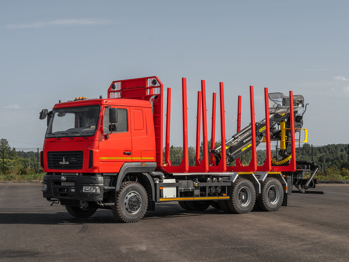 Дилерская сеть МАЗСортиментовоз на шасси МАЗ-6312. Предназначен для перевозки леса и сортимента различной длины в составе автопоезда.