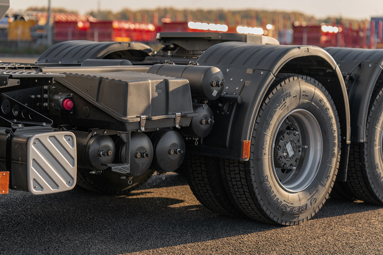 - Кабина. Комфорт кабины обеспечивается её установкой на пружины и пневмоэлементы (4 точки крепления). Рулевая колонка регулируется по высоте и наклону. Сиденье водителя — подрессоренное, с регулировками в различных плоскостях. В высоком исполнении кабины два спальных места.