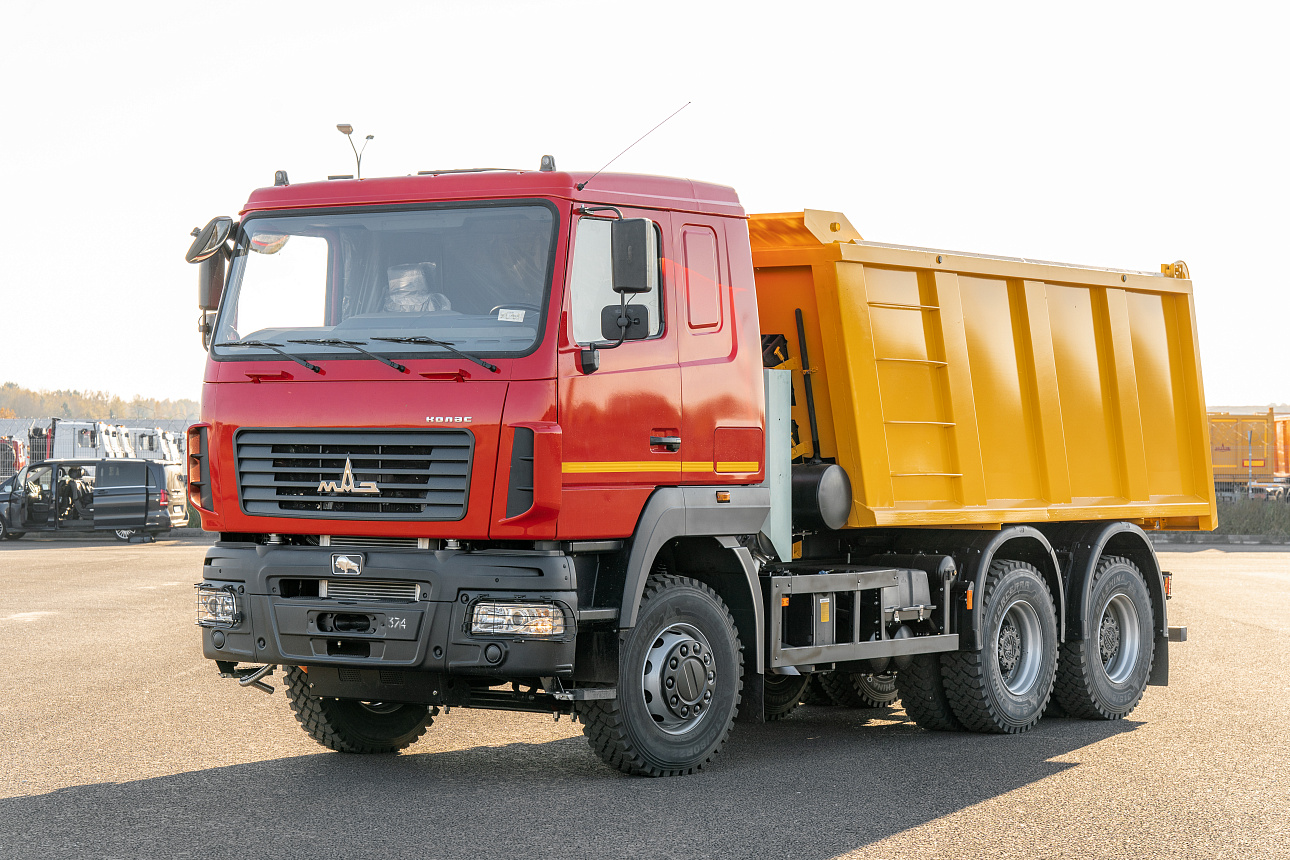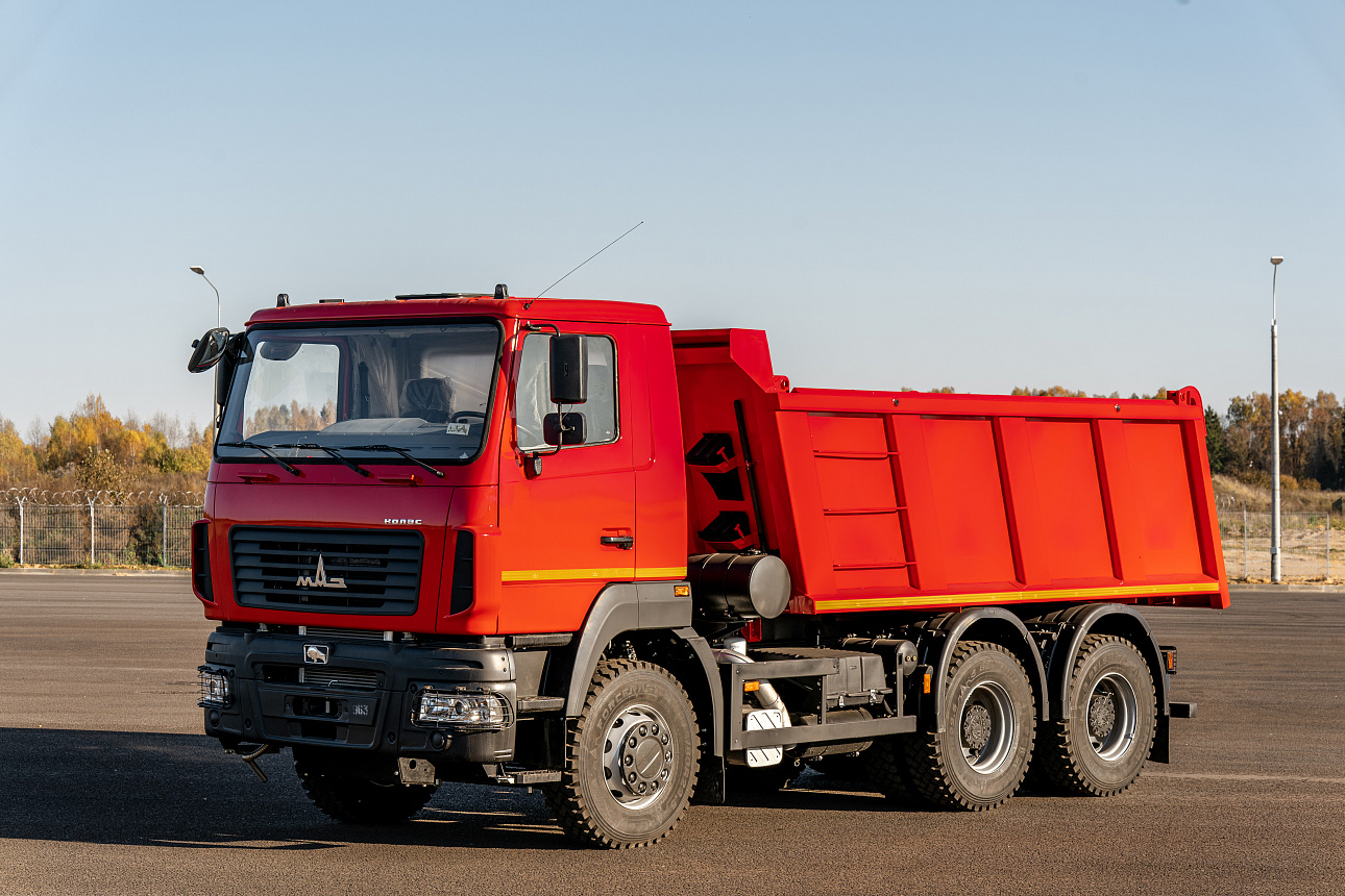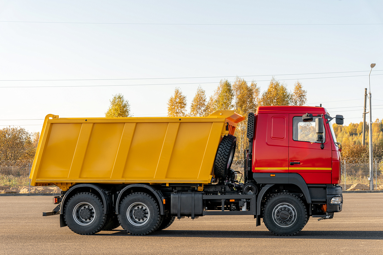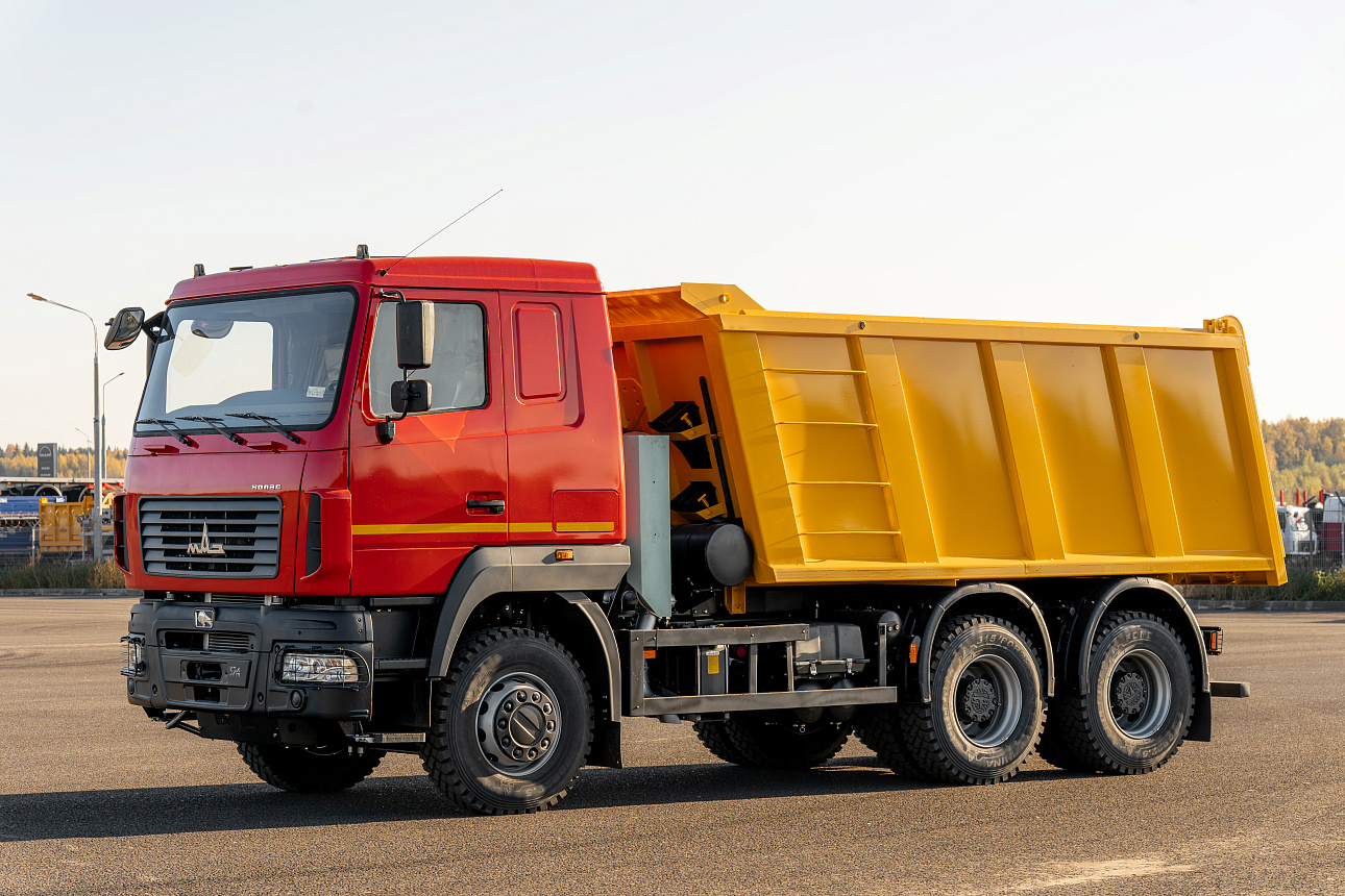 Дилерская сеть МАЗСамосвал с колесной формулой 6х4. Предназначен для перевозки различного рода строительных и сельскохозяйственных грузов по дорогам общего назначения.