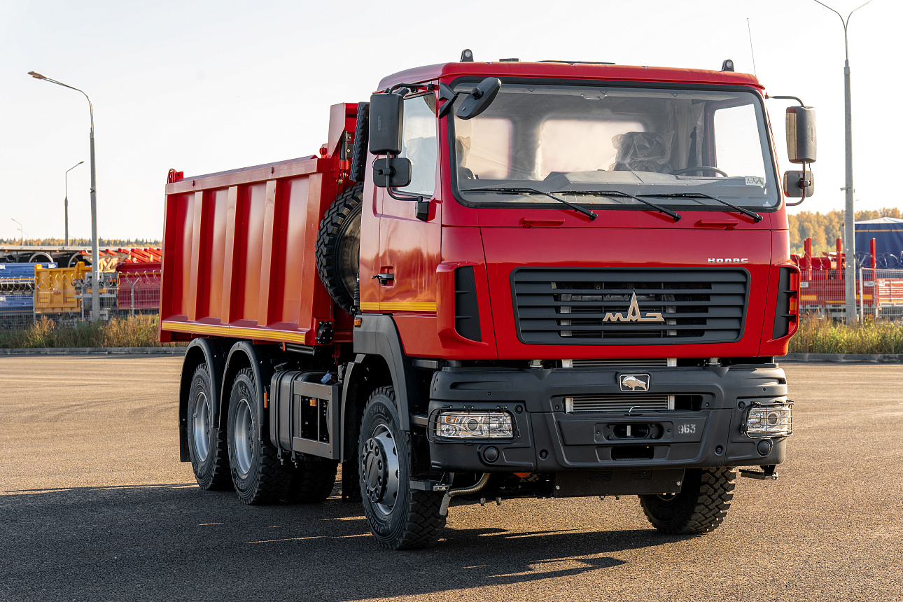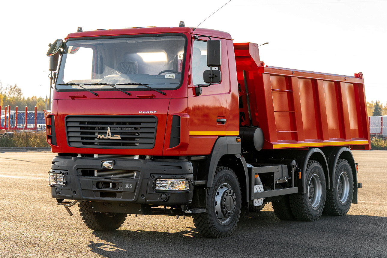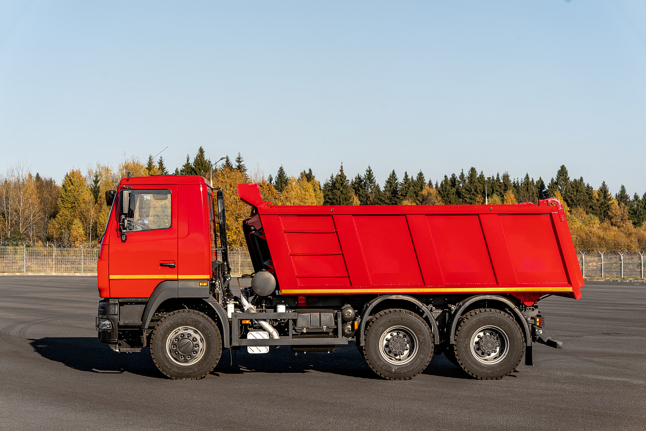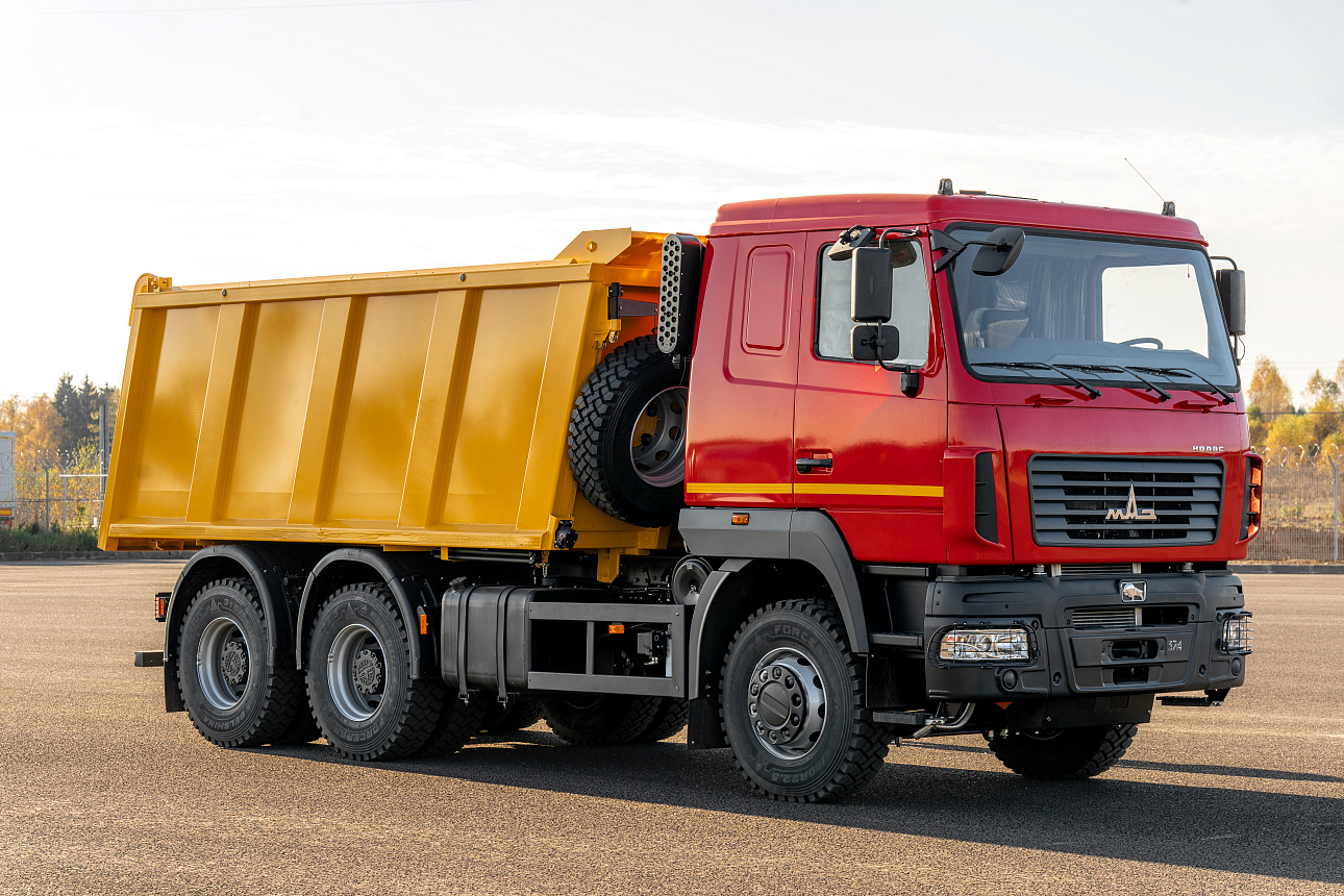 Дилерская сеть МАЗСамосвал с колесной формулой 6х4. Предназначен для перевозки различного рода строительных и сельскохозяйственных грузов по дорогам общего назначения.